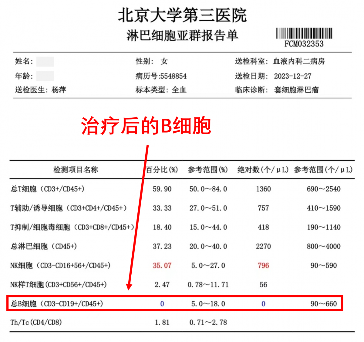 那你的B细胞,是多少?