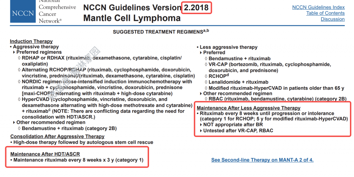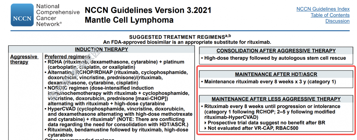 强方案:大剂量化疗/移植后,应该用美罗华维持,每8周一次,连续3年!