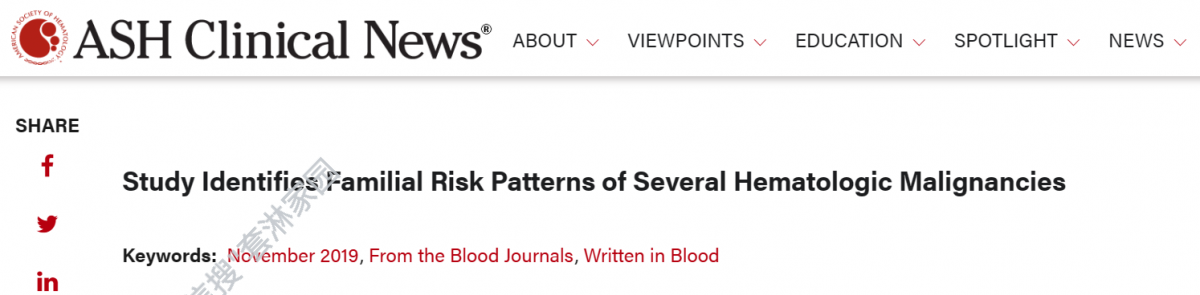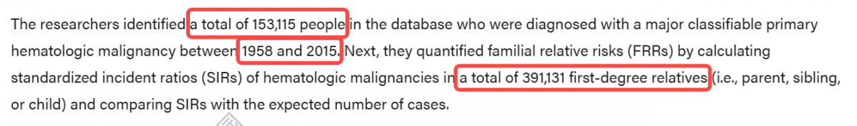 标题是:研究已经确定了几种血液肿瘤的家族风险模式。