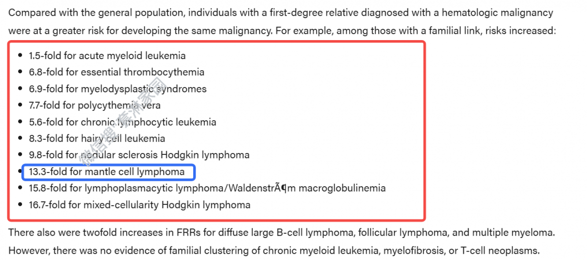 当我看到家族风险,完了,第一反应是会不会有套细胞淋巴瘤?第二反应是,套细胞淋巴瘤会不会遗传?