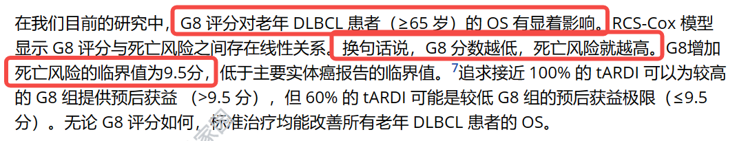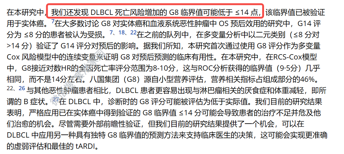 之前已经有文献发表这个G8工具,在老年弥漫大B细胞淋巴瘤患者上的评估。现在用于套细胞淋巴瘤患者评估。