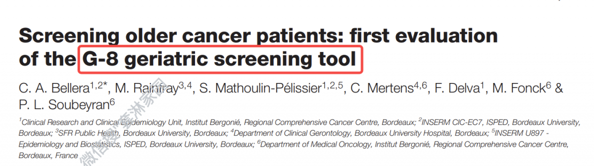 在实体瘤患者上,也是用的同样的工具,G8。我们来看看到底G8是什么?如何来评估?