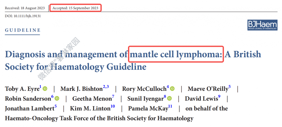 英国血液学会2023年发表的最新《套细胞淋巴瘤的诊断和管理》指南: