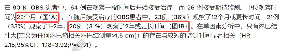 3. 这27.6%的患者里面,75%在确诊1年后,依然继续观察,没有治疗。50%的患者,甚至在确诊2年后,还在观察,没有治疗。