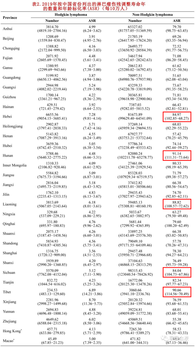 非霍奇金淋巴瘤哪个省份的发病率高?标出前五名!